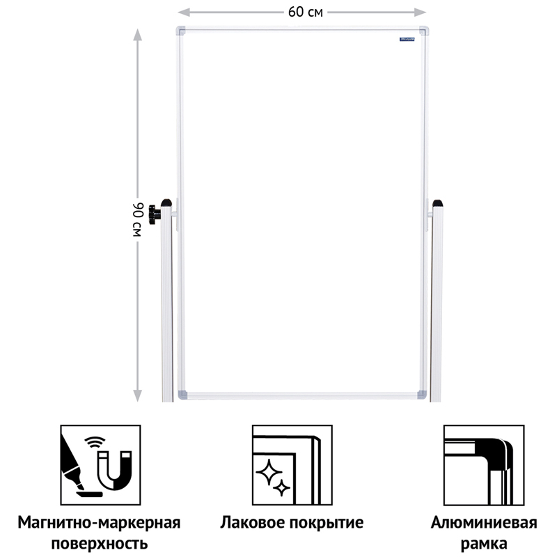 Доска магнитно-маркерная OfficeSpace, 90*60см, двустронняя, поворотная, мобильная, алюминиевый профиль 325507