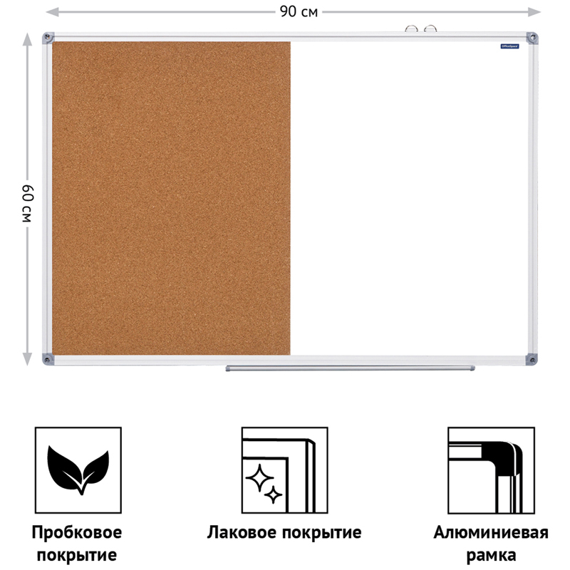 Доска магнитно-маркерная/пробковая OfficeSpace, 60*90см, алюминиевая рамка 307416