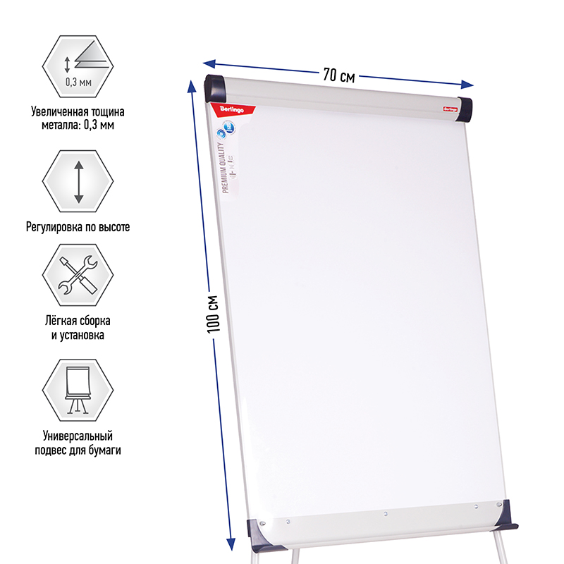 Флипчарт Berlingo "Premium", 70*100см, на треноге, регулировка по высоте, полочка 199150