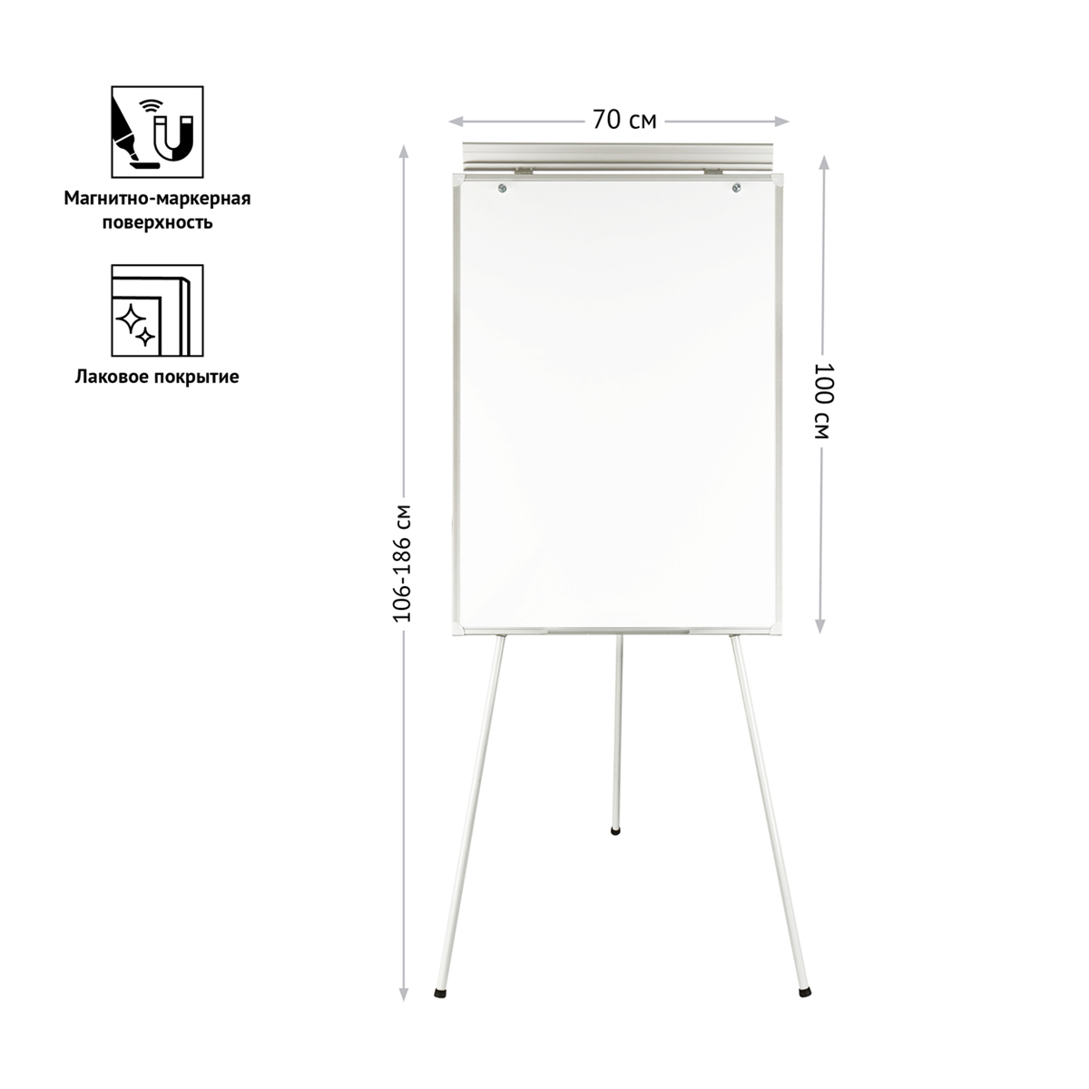 Флипчарт OfficeSpace, 70*100см, на треноге, регулир. по высоте, выдвиж. штанги, полочка 263710