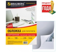 Обложки для переплета картон. А4 "кожа" 230 г/кв.м, белые, 100 листовBRAUBERG 530838