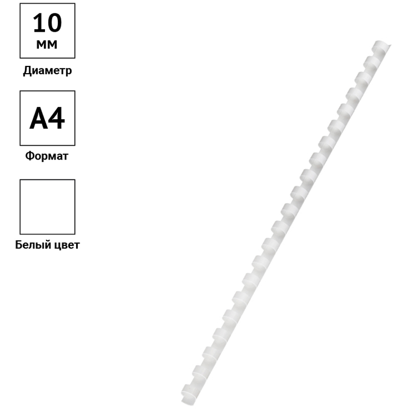Пружины пластиковые для переплета, КОМПЛЕКТ 100 шт., 10 мм (для сшивания 41-55 л.), белые, OfficeSpace, 100шт. , PC7003, 222443