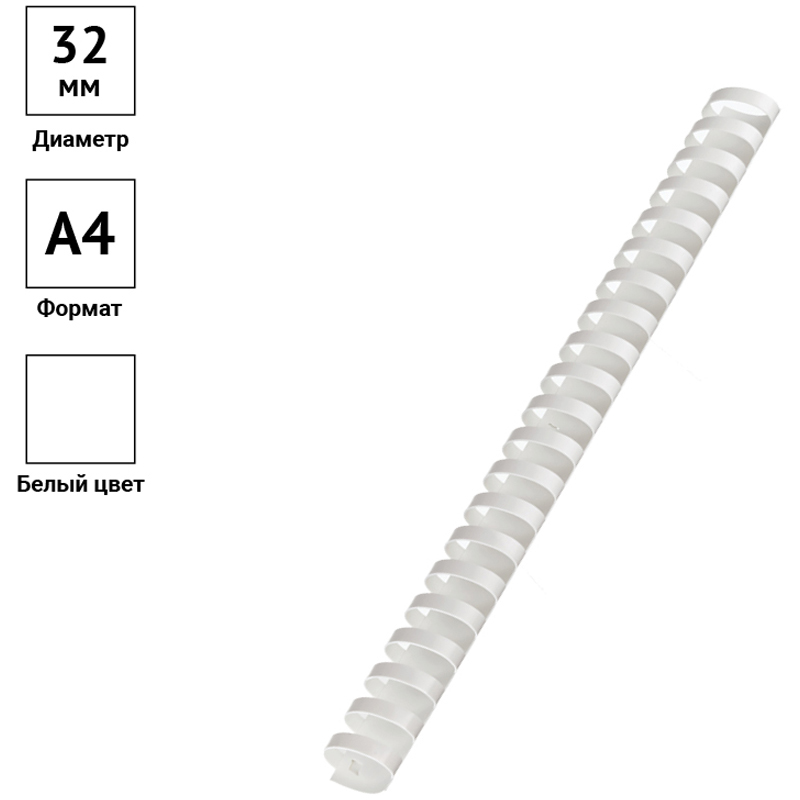 Пружины для переплётных машин 32мм., белые, 50шт. OfficeSpace 222467