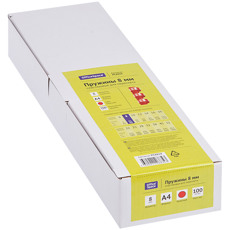 Пружины пластик D=08мм OfficeSpace, красный, 100шт. 292181
