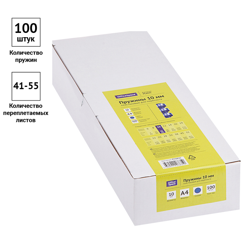 Пружины пластик D=10мм OfficeSpace, синий, 100шт. 292182