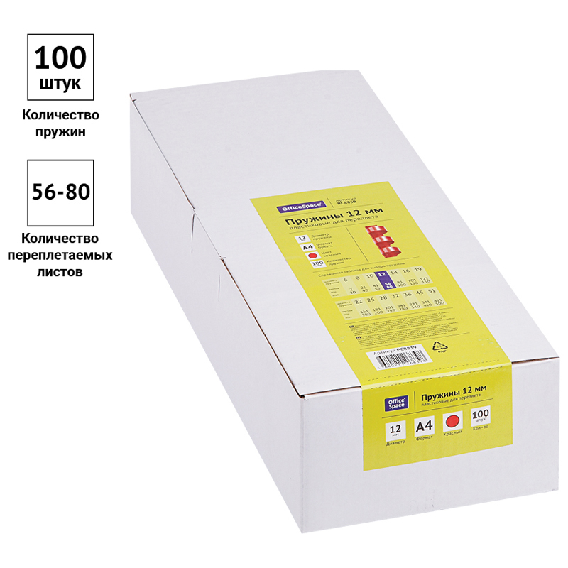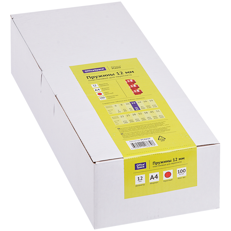 Пружины пластик D=12мм OfficeSpace, красный, 100шт. 292186