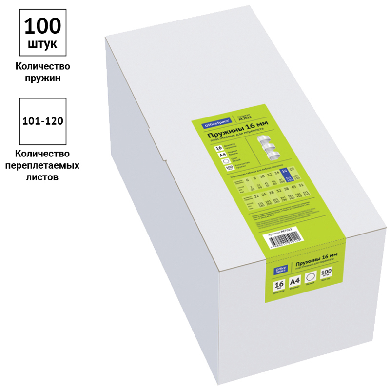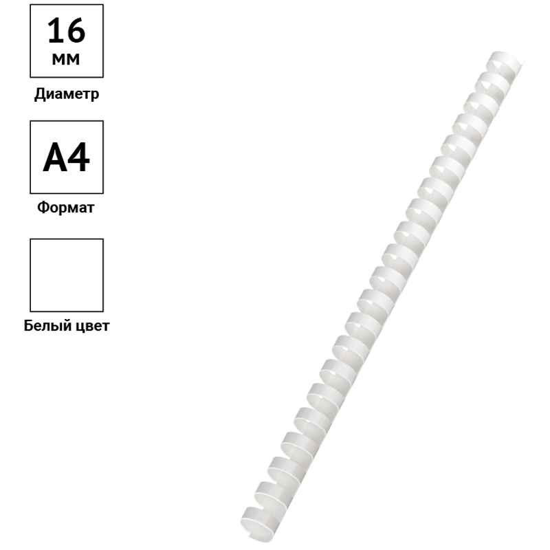 Пружины пластик D=16мм OfficeSpace, белый, 100шт. 222452