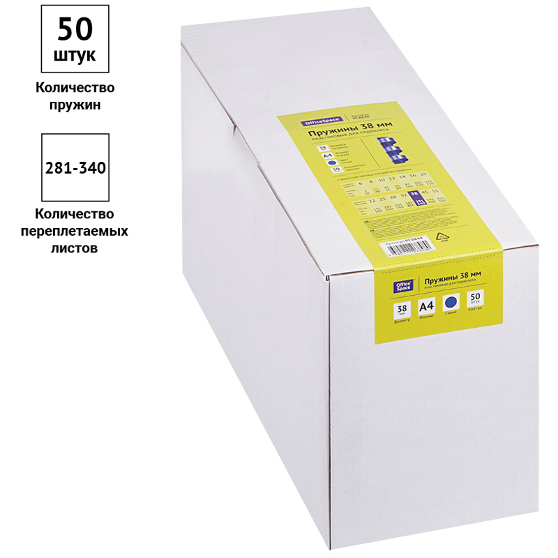 Пружины пластик D=38мм OfficeSpace, синий, 50шт. 292195