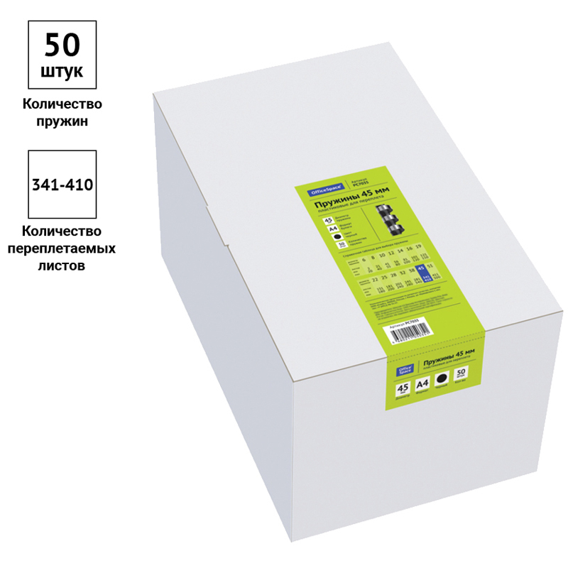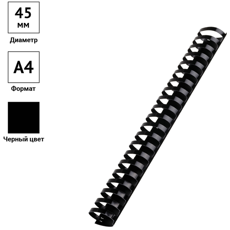 Пружины пластик D=45мм OfficeSpace, черный, 50шт. 222475