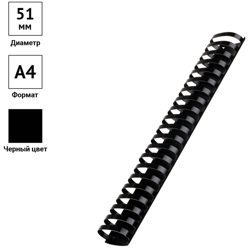 Пружины пластик D=51мм OfficeSpace, черный, 50шт. 222478