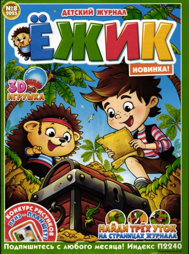 Журнал "Ёжик" - идеальный журнал для детей! Добрый, веселый и познавательный, создан российскими авторами и иллюстраторами. Герои журнала, Ёжик и его друзья, подготовили интересные задания - хитрые ребусы, задачки, раскраски, математические задания, вырезалки, лабиринты и искалки.