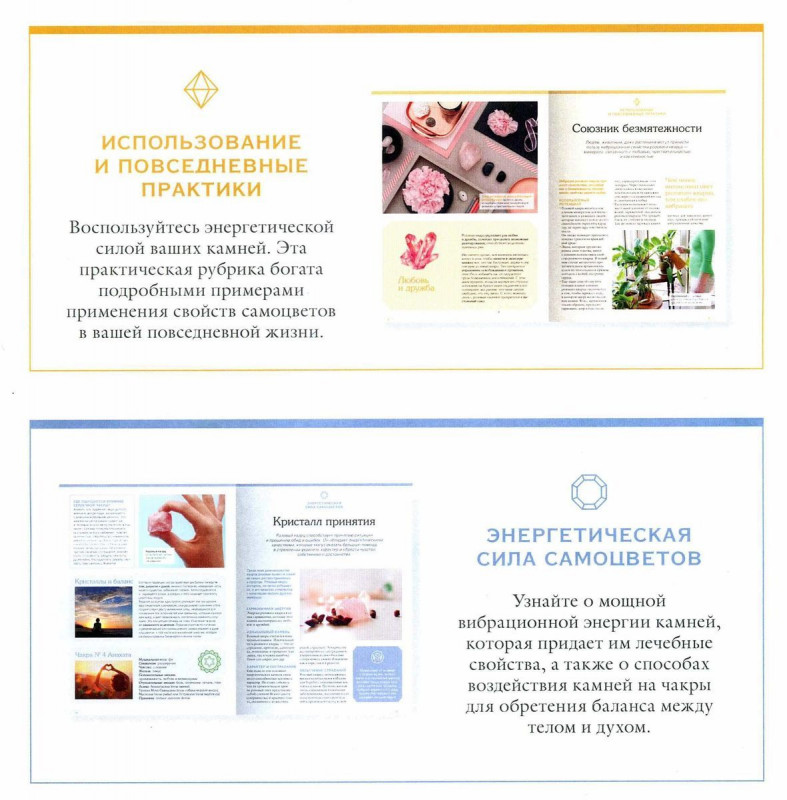 С данным выпуском вы получите журнал и два полудрагоценных камня или кристалла, упакованных в индивидуальные коробочки.