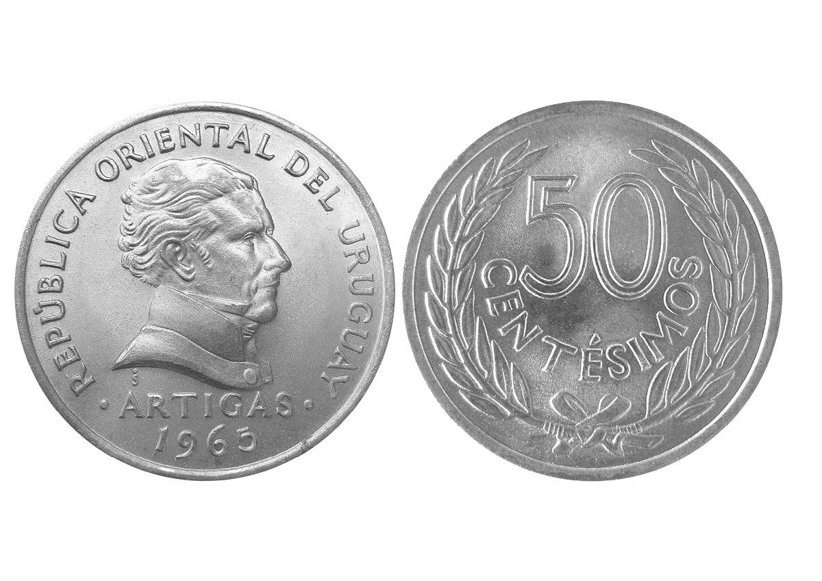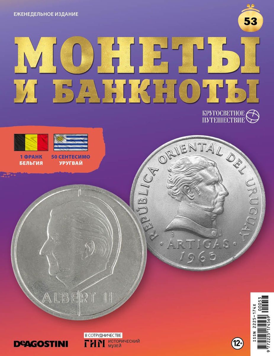 1 франк (Бельгия), 50 сентесимо (Уругвай) + лист для монет