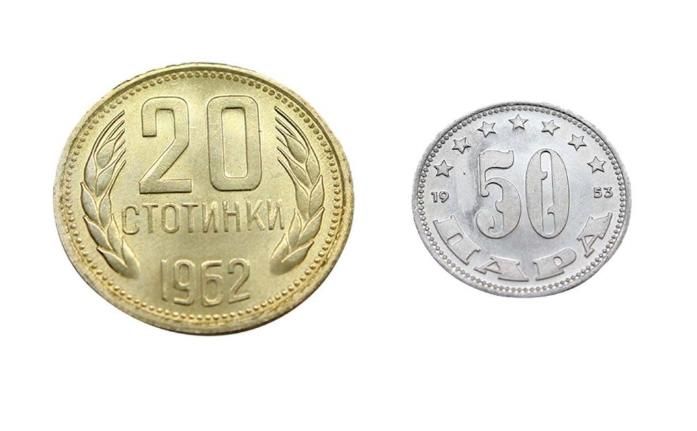 Вложение 20 стотинок (Болгария), 50 пара (Югославия)