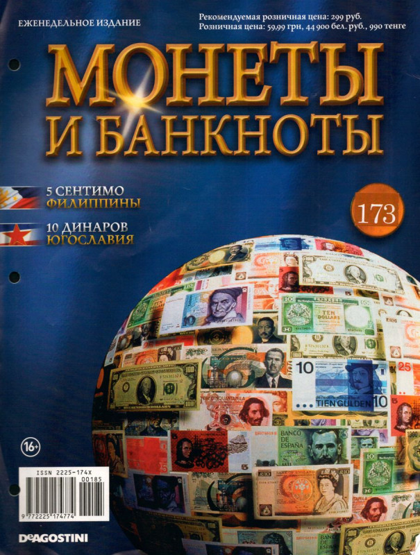 Журнал Монеты и банкноты №173 - 5 Сентимо (Филиппины ), 10Динаров (Югославия )