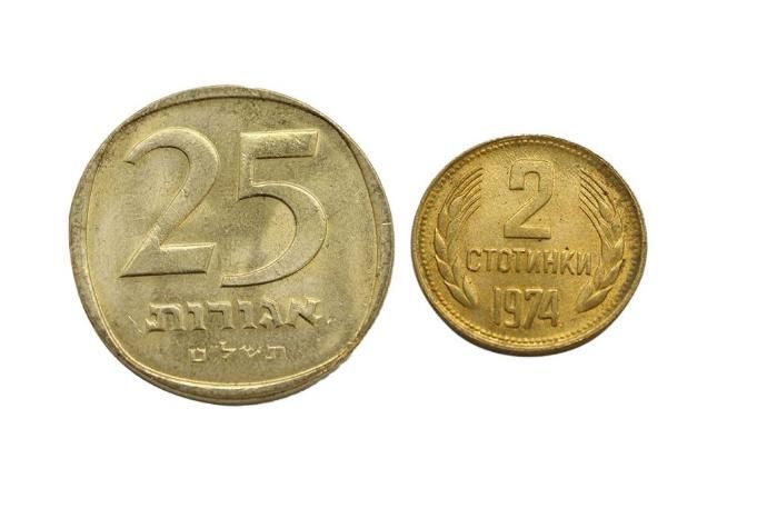 Вложение 25 агорот (Израиль ), 2 стотинки (Болгария )