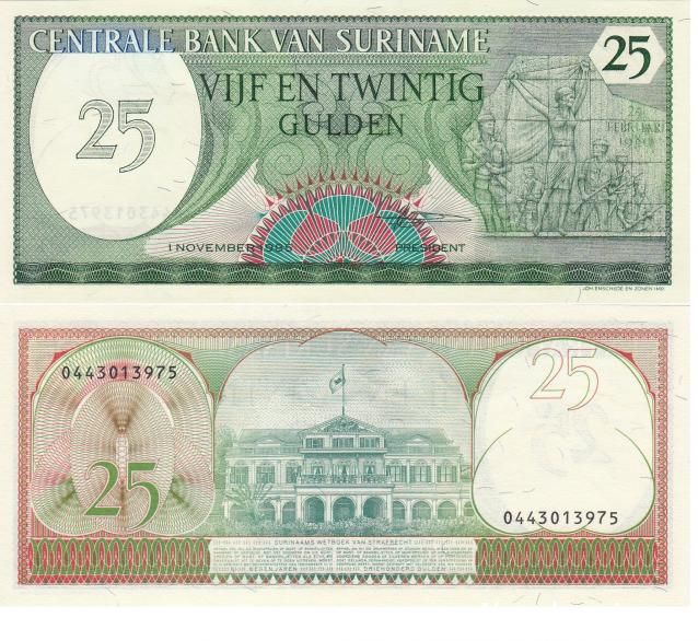 25 Гульденов (Суринам), 1 динар (Югославия)