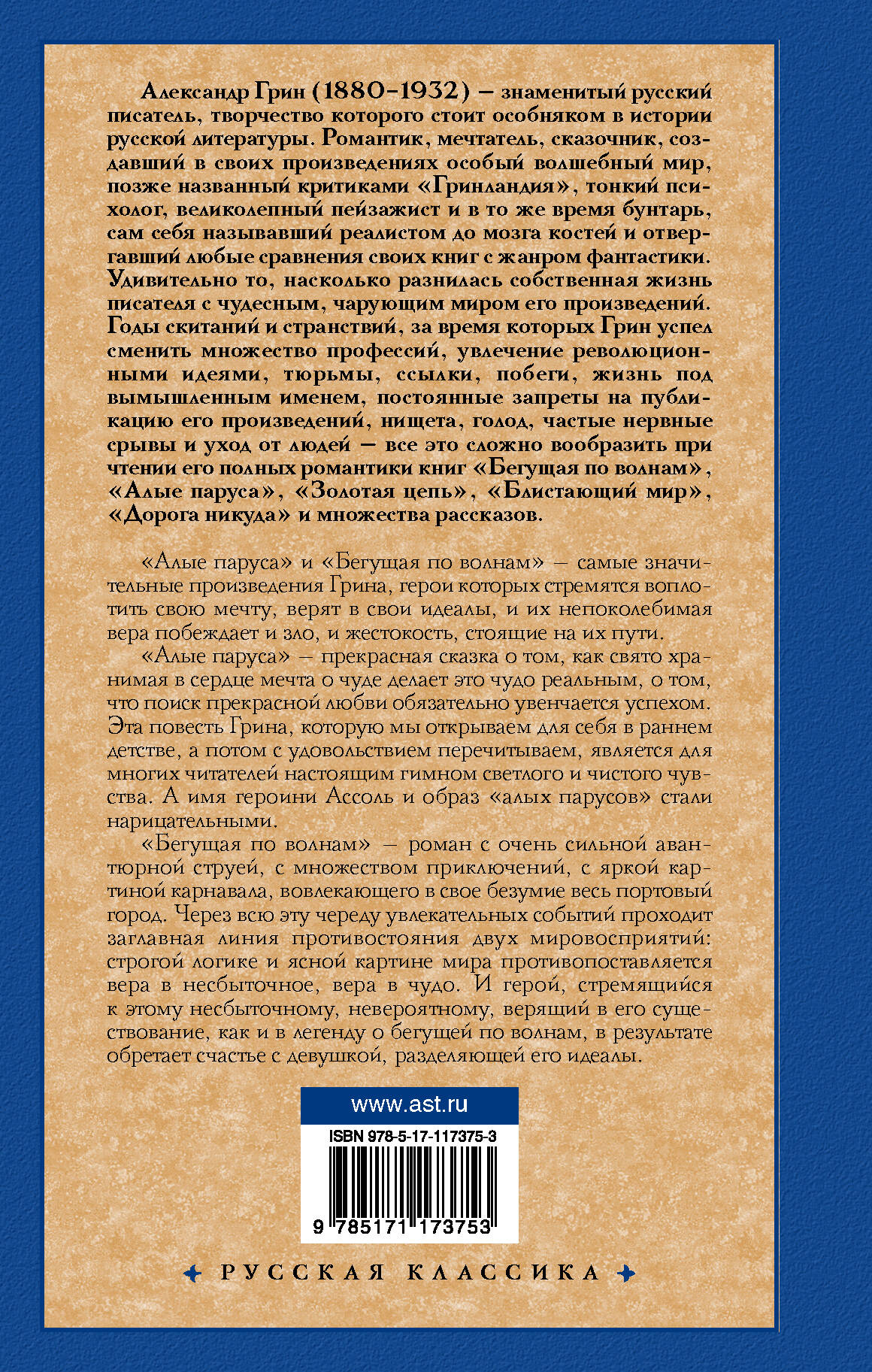 «Алые паруса» и «Бегущая по волнам» – самые значительные произведения Грина, герои которых стремятся воплотить свою мечту, верят в свои идеалы, и их непоколебимая вера побеждает и зло, и жестокость, стоящие на их пути._x000D_