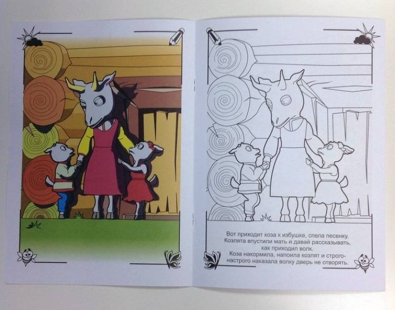 Сказка-раскраска "Волк и семеро козлят", А4, мягкая обложка