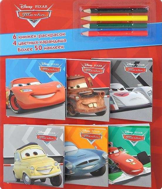 Тачки.Раскраски в кармашках{набор:раскр.с накл.(6шт),цв.