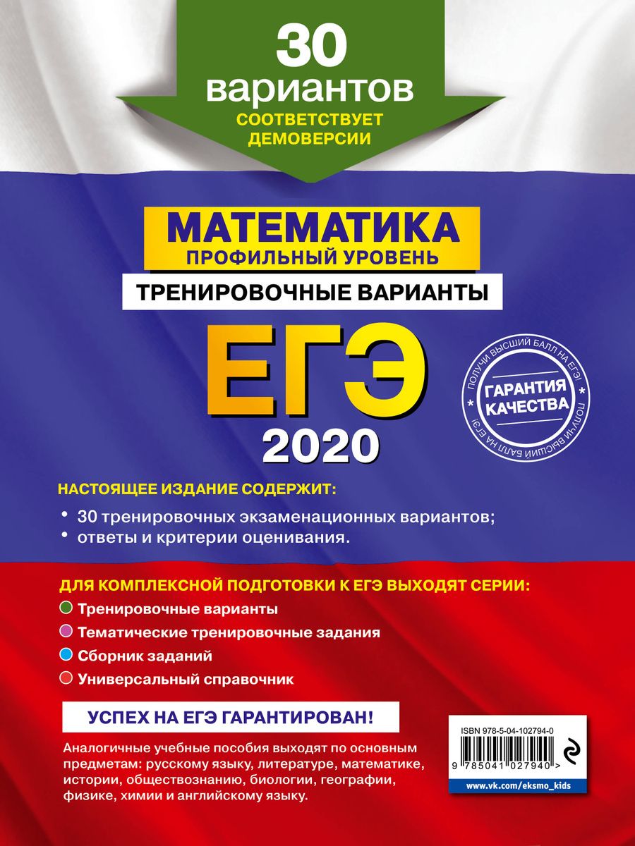 ЕГЭ-2020. Математика. Профильный уровень. Тренировочные варианты. 30 вариантов