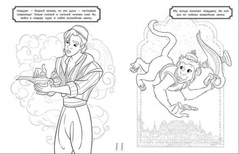 Волшебный мир Аладдина и Жасмин. Раскраска