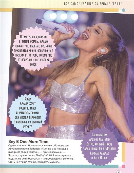 Ты - фанат Арианы Гранде и думаешь, что знаешь о ней все или почти все? Открывай скорее эту книгу и ты поймешь, сколько еще интересного тебе предстоит узнать! Зачем Ариана носит в сумочке кайенский перец? Каким голосом она разговаривает, если хочет поберечь связки? Что означает татуировка у нее на шее? Ответы на эти и еще множество других вопросов ты найдешь на страницах этого очень подробного справочника об Ариане Гранде.