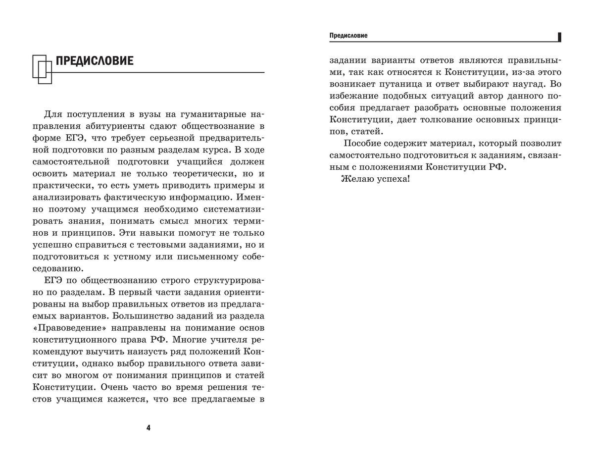 Данное пособие предназначено для подготовки к выполнению заданий по одному из разделов обществознания - «Правоведение». Для успешного выполнения заданий, касающихся конституционного права РФ, необходимо знать основы конституционного строя РФ, понимать значение основных статей Конституции. Пособие содержит рекомендации по выполнению тестовых заданий, комментарии ряда статей Конституции РФ, что позволит самостоятельно подготовиться к заданиям по основам конституционного строя РФ, как первой, так и второй части ЕГЭ. Пособие предназначено для всех, кто готовится к сдаче ЕГЭ по обществознанию, для учителей и репетиторов в качестве дополнительной литературы.