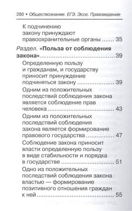 Сборник содержит 66 универсальных эссе по правоведению, соответствующих всем критериям оценивания в них четко сказано, о чем говорит автор; обозначены основные аспекты темы: текст эссе соответствует выявленному смыслу высказывания, четко обозначена позиция выпускника по отношению к мнению автора привлечены теоретические положения содержания школьного курса обществознания. приведены примеры из истории, литературы или средств массовой информации, отсутствуют терминологические и иные ошибки, эссе соответствуют нормам русского языка. Настоящий сборник предназначен для помощи учащимся 11 классов общеобразовательных школ в выполнении задания 29 на Едином государственном экзамене по обществознанию.
