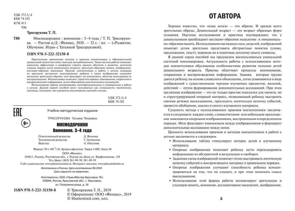 Татьяна Трясорукова: Мнемодорожки. Внимание. 3-4 года