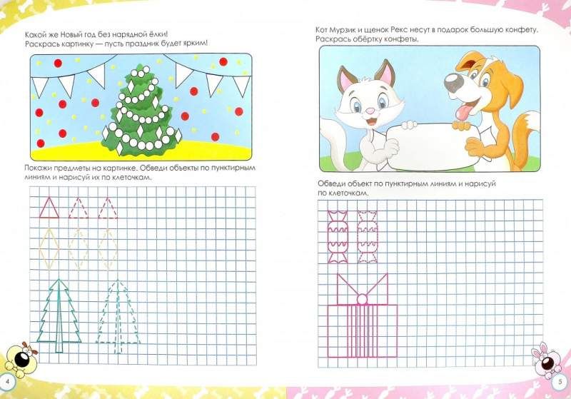Эта тетрадь предназначена для самостоятельных занятий детей старшего дошкольного возраста. Цель этих занятий - развитие произвольного внимания, зрительного восприятия, мелкой моторики и координации движений руки, умения ориентироваться на листе бумаги. Перед началом занятий объясните ребенку, что нужно сделать, и сразу дайте ответ на все его вопросы. Это позволит малышу в дальнейшем заниматься без вашей помощи. На каждой страничке нужно сначала нарисовать узоры по клеточкам, а затем скопировать картинки. После этого картинки можно раскрасить цветными карандашами. Напомните ребенку, что выполнять задания надо аккуратно, точно по клеточкам. Не забудьте похвалить ребенка за старание!