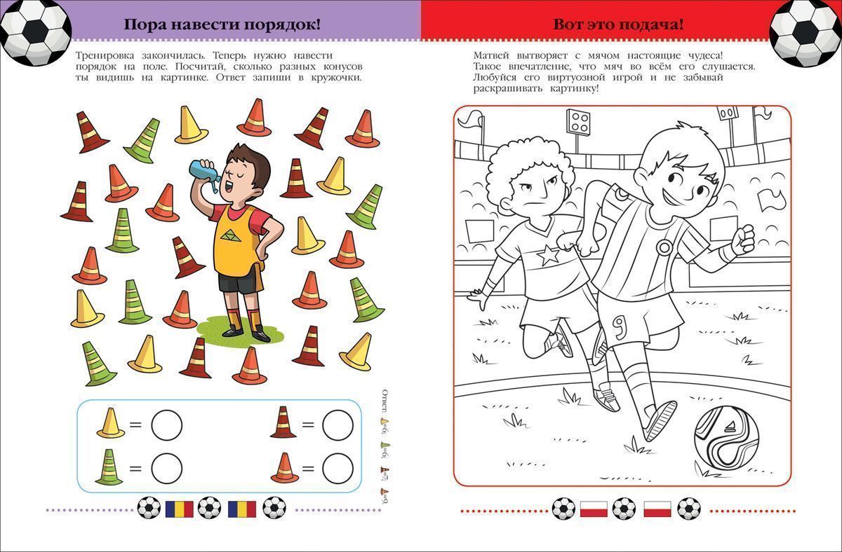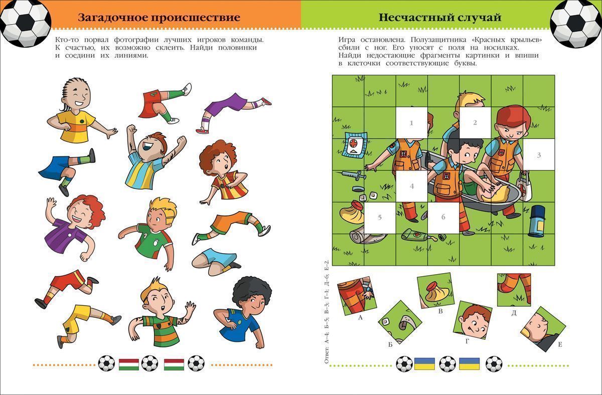Занимательный сборник игр, раскрасок и головоломок на тему футбола.