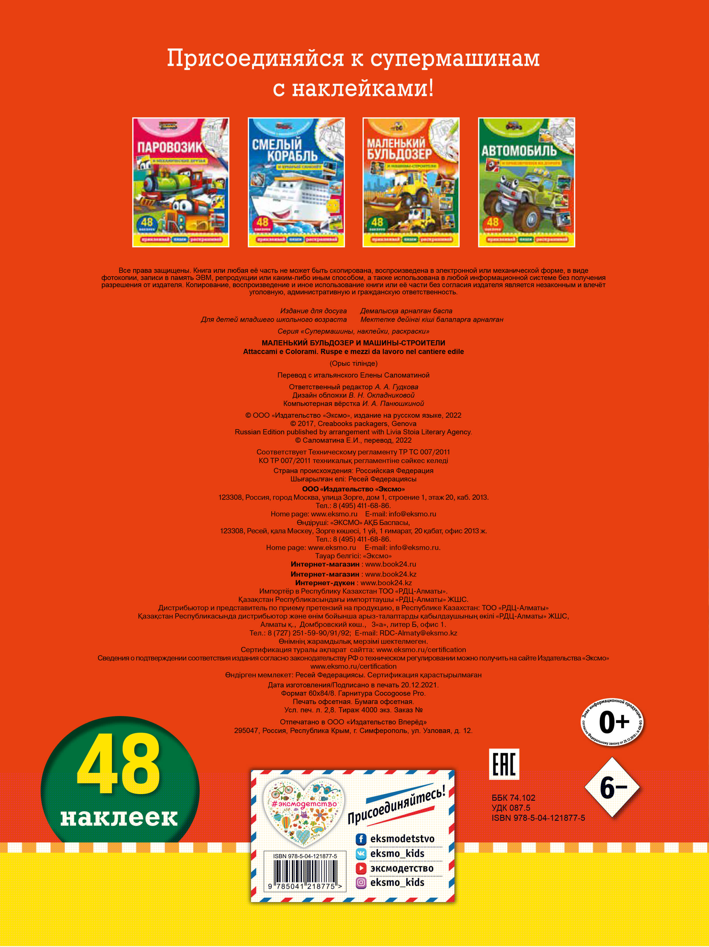 Как только придумаете историю, вас ждет главное развлечение — пазл из наклеек и раскраски. Подбирайте недостающие фрагменты изображений в наклейках, тренируйте моторику, наклеивая их на свои места, раскрашивайте рисунки самыми яркими цветами и веселитесь от души с машинами — героями стройки!