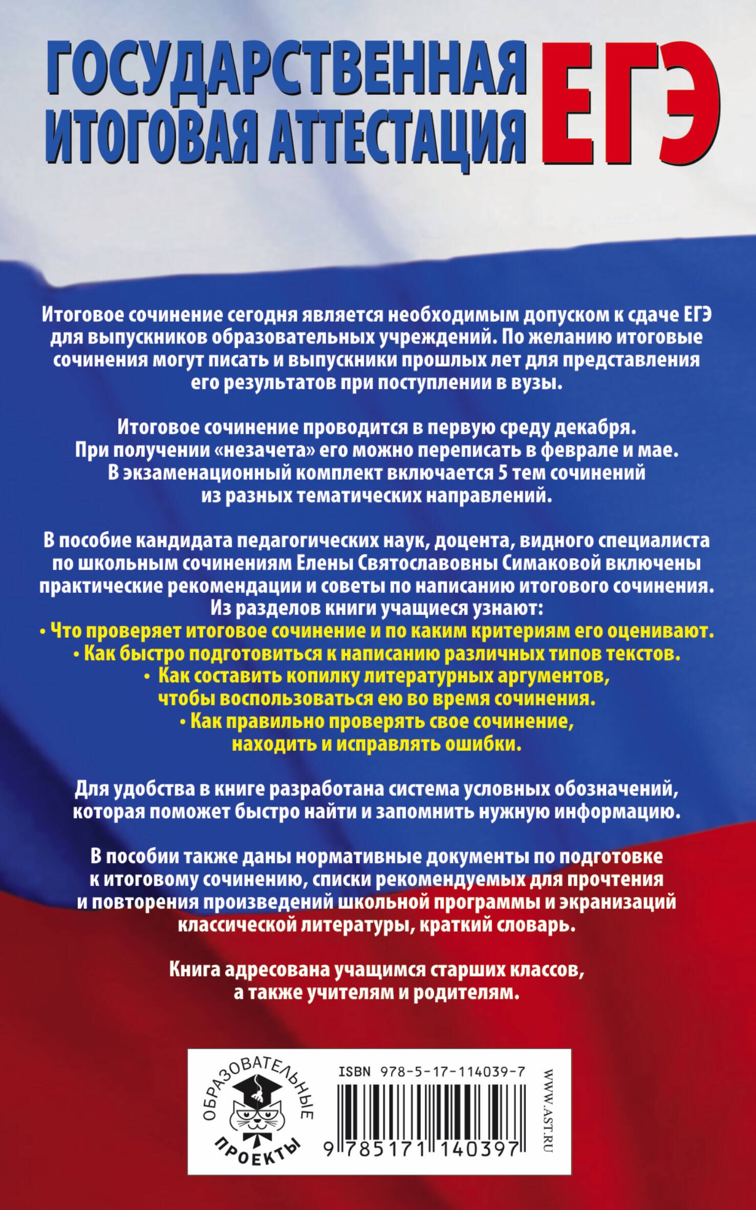 Симакова Елена Святославовна: ЕГЭ. Итоговое сочинение на "отлично"! перед единым государственным экзаменом