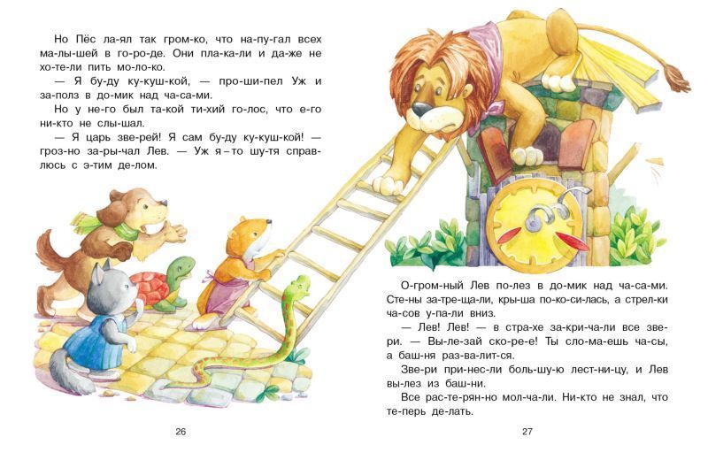 Малышу, начинающему читать, будет легко прочитать эту книжку, ведь слова в ней разделены на слоги и напечатаны крупным шрифтом. А персонажи некоторых сказок ему уже знакомы по мультфильмам.