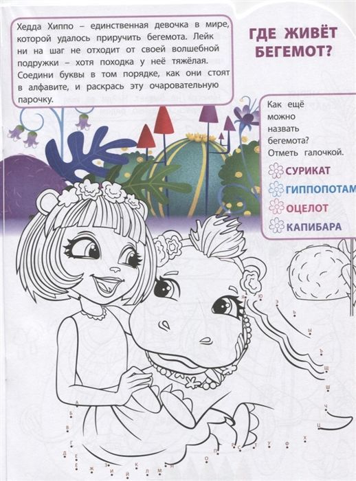 Раскраска. Фрагменты рисунков нужно дорисовать по точкам. Под рисунками забавные подписи, комментирующие происходящее на картинке. Для детей младшего школьного возраста.