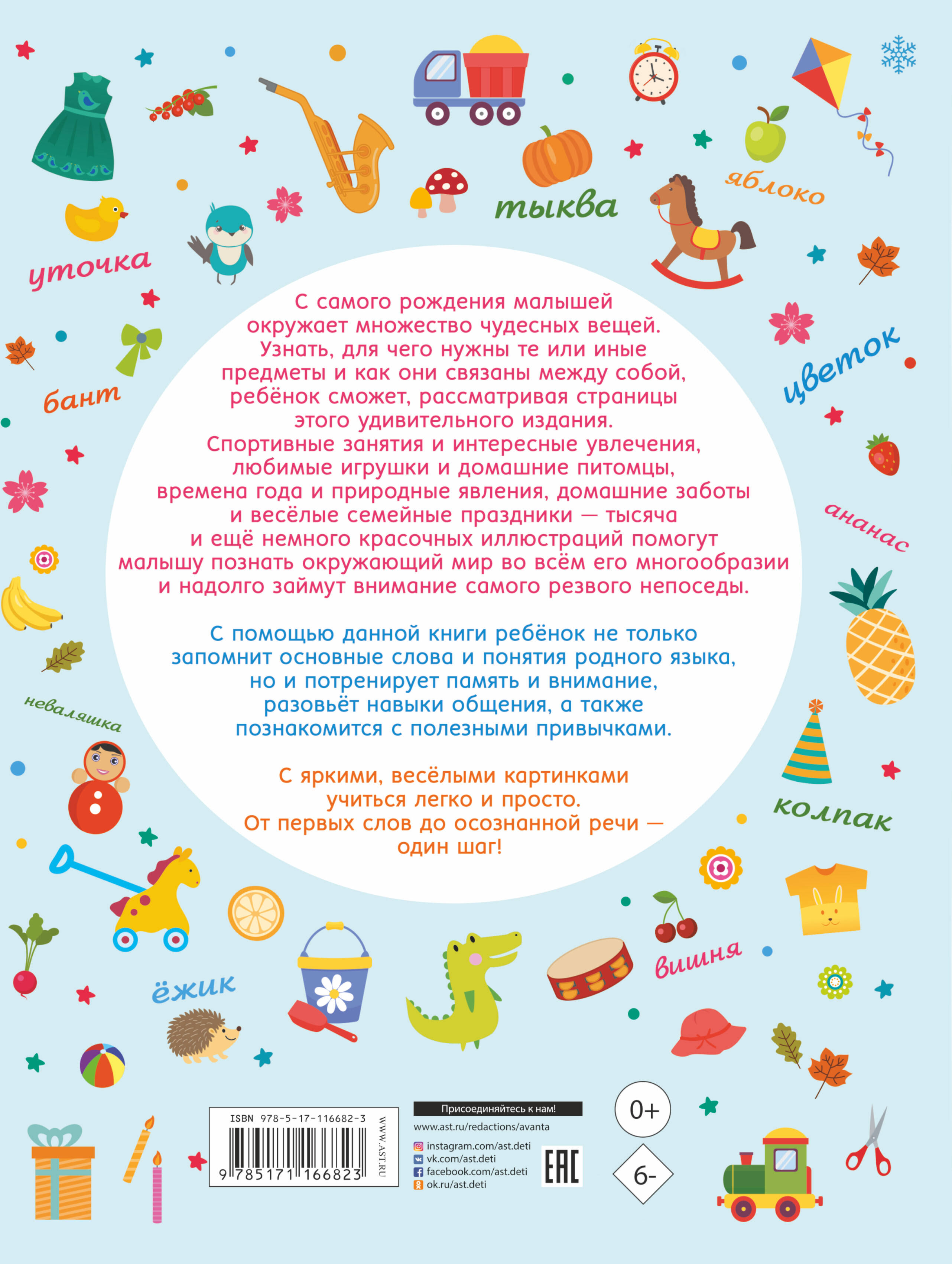 Книга «Большая книга в картинках для малышей» не только познакомит малыша с названиями окружающих его предметов и явлений, но и научит считать, разовьёт речь, расширит кругозор и привьёт множество полезных привычек: мыть руки, чистить зубы, помогать родителям по дому, правильно питаться. С яркими, весёлыми картинками обогащать свой лексикон легко и просто. От первых слов до грамотной самостоятельной речи — один шаг! А тематические подборки слов и побуждающие вопросы — прекрасный способ повторить и лучше усвоить слова родного языка. Увеличивайте словарный запас как можно раньше!_x000D_