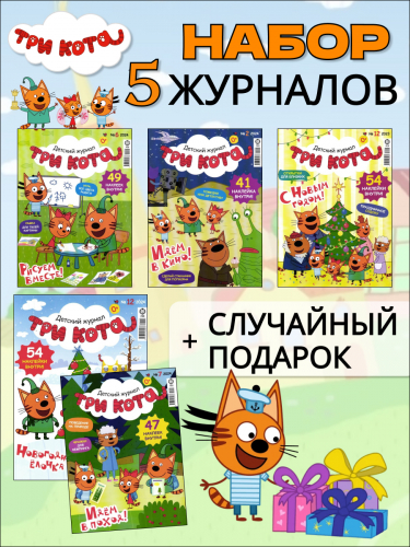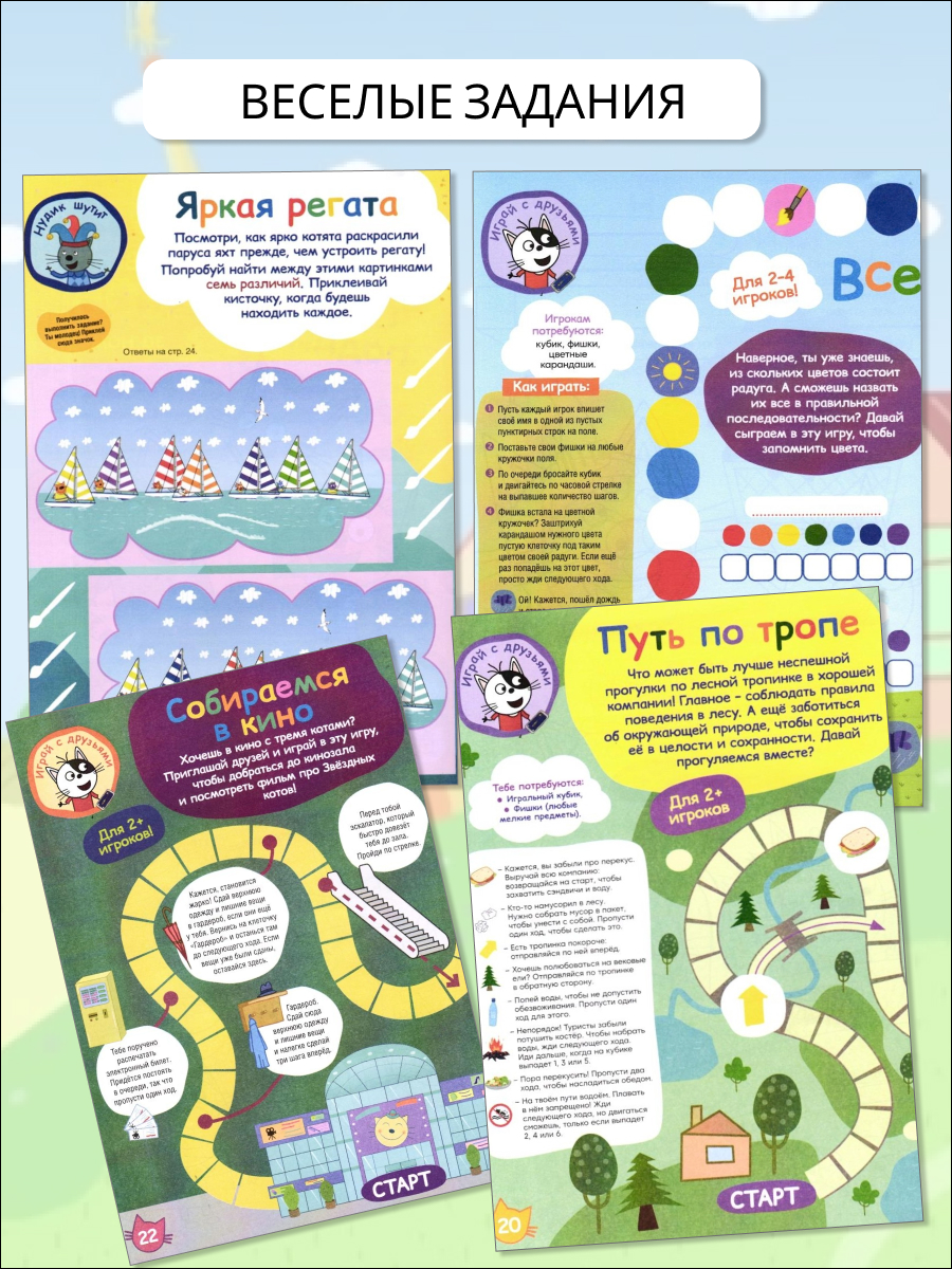 W0616 Три кота / Набор для детей / пять журналов - наклейки и магнитная фоторамка