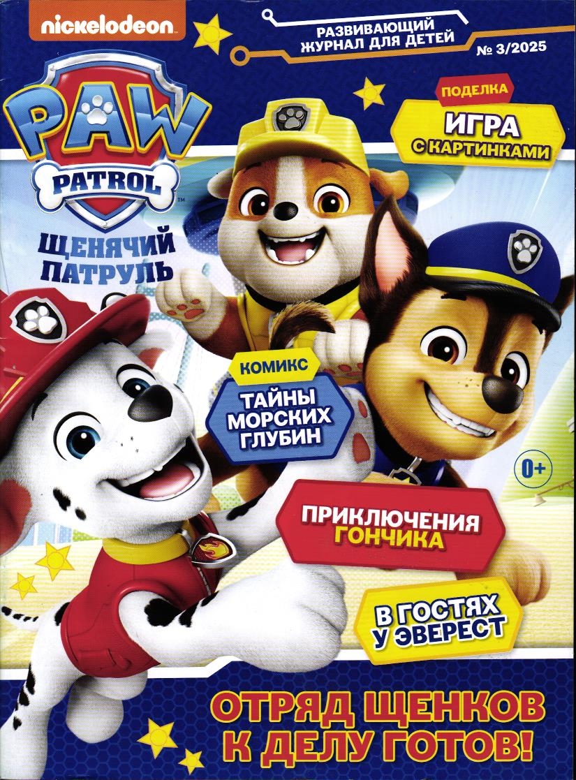 Щенячий патруль – развивающий журнал для самых смелых мальчишек и девчонок, готовых совершить героические подвиги вместе с командой щенков-спасателей! Случилась беда? Нужна помощь? Только позови — и к тебе на помощь примчится дружная команда спасателей. Отважным щенкам всё-всё по зубам!