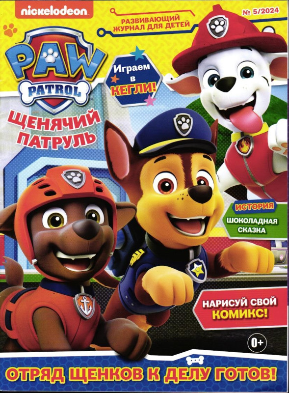 Щенячий патруль – развивающий журнал для самых смелых мальчишек и девчонок, готовых совершить героические подвиги вместе с командой щенков-спасателей! Случилась беда? Нужна помощь? Только позови — и к тебе на помощь примчится дружная команда спасателей. Отважным щенкам всё-всё по зубам!