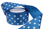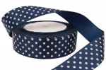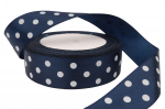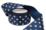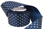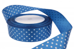 Атласная лента в горошек (синий), 6мм * 50 ярдов (+-1)