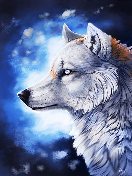 Алмазная мозаика картина стразами Белый волк, 30х40 см