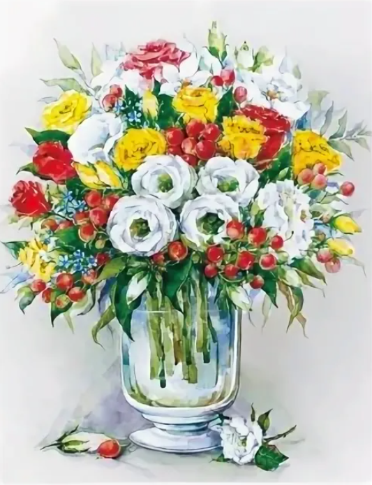 Алмазная мозаика картина стразами Букет из ягод и полевых цветов, 30х40 см