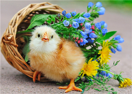 Алмазная мозаика картина стразами Цыплёнок с корзинкой цветов, 40х50 см
