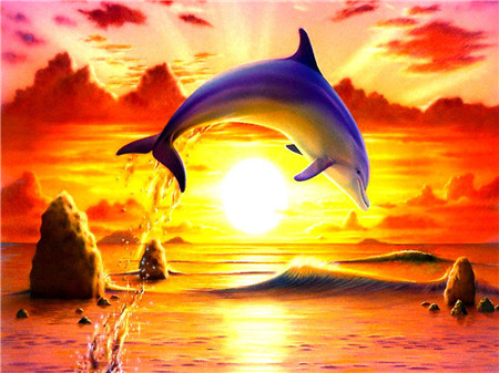 Алмазная мозаика картина стразами Дельфин на закате, 30х40 см