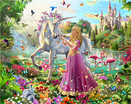 Алмазная мозаика картина стразами Девушка с единорогом, 40х50 см