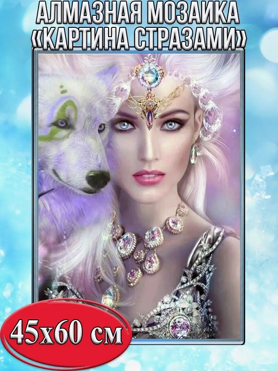 Алмазная мозаика картина стразами Девушка с волком, 50х65 см