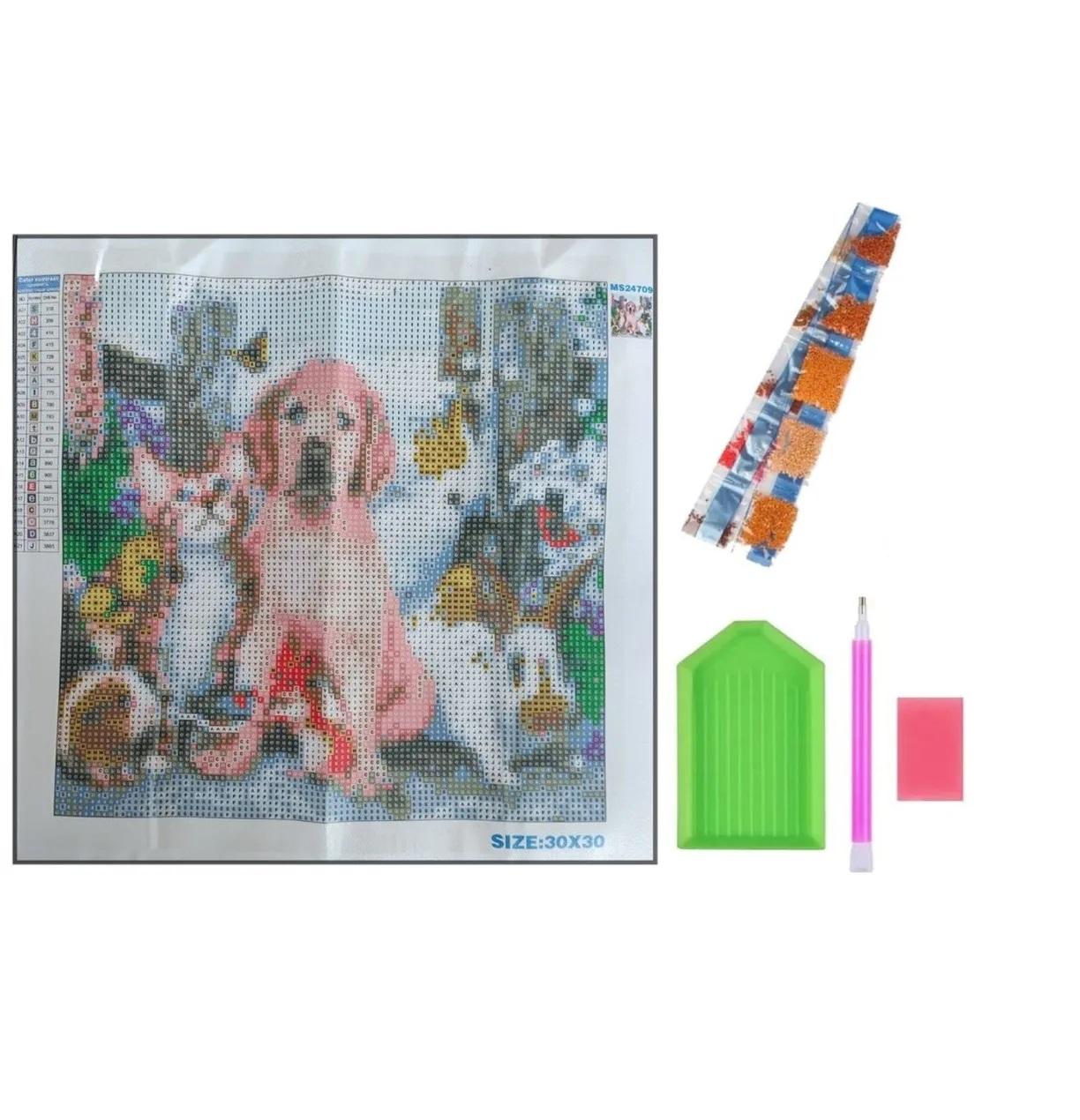 Алмазная мозаика картина стразами Домашние питомцы, 30х30 см