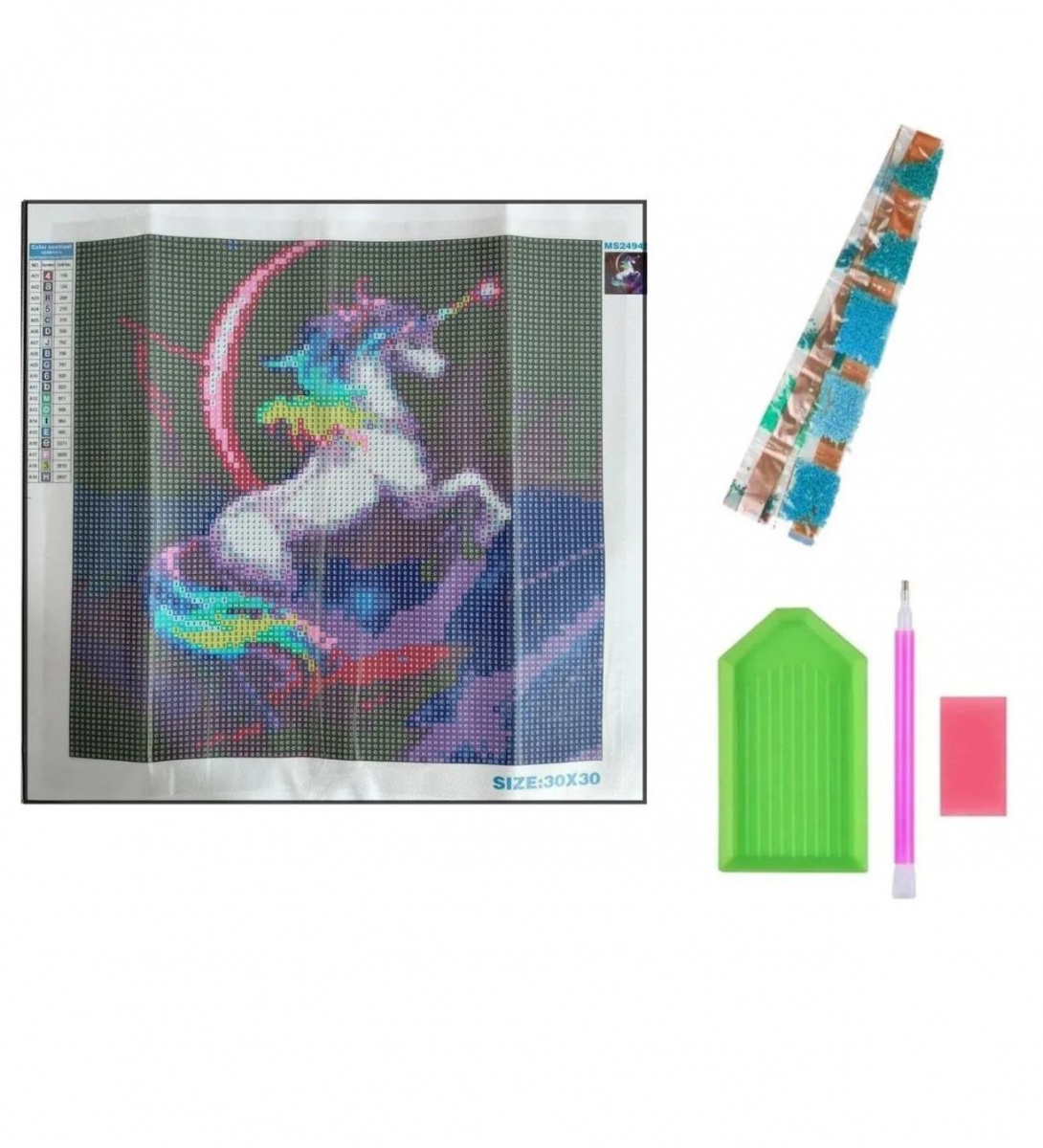 Алмазная мозаика картина стразами Единорог, 30х30 см