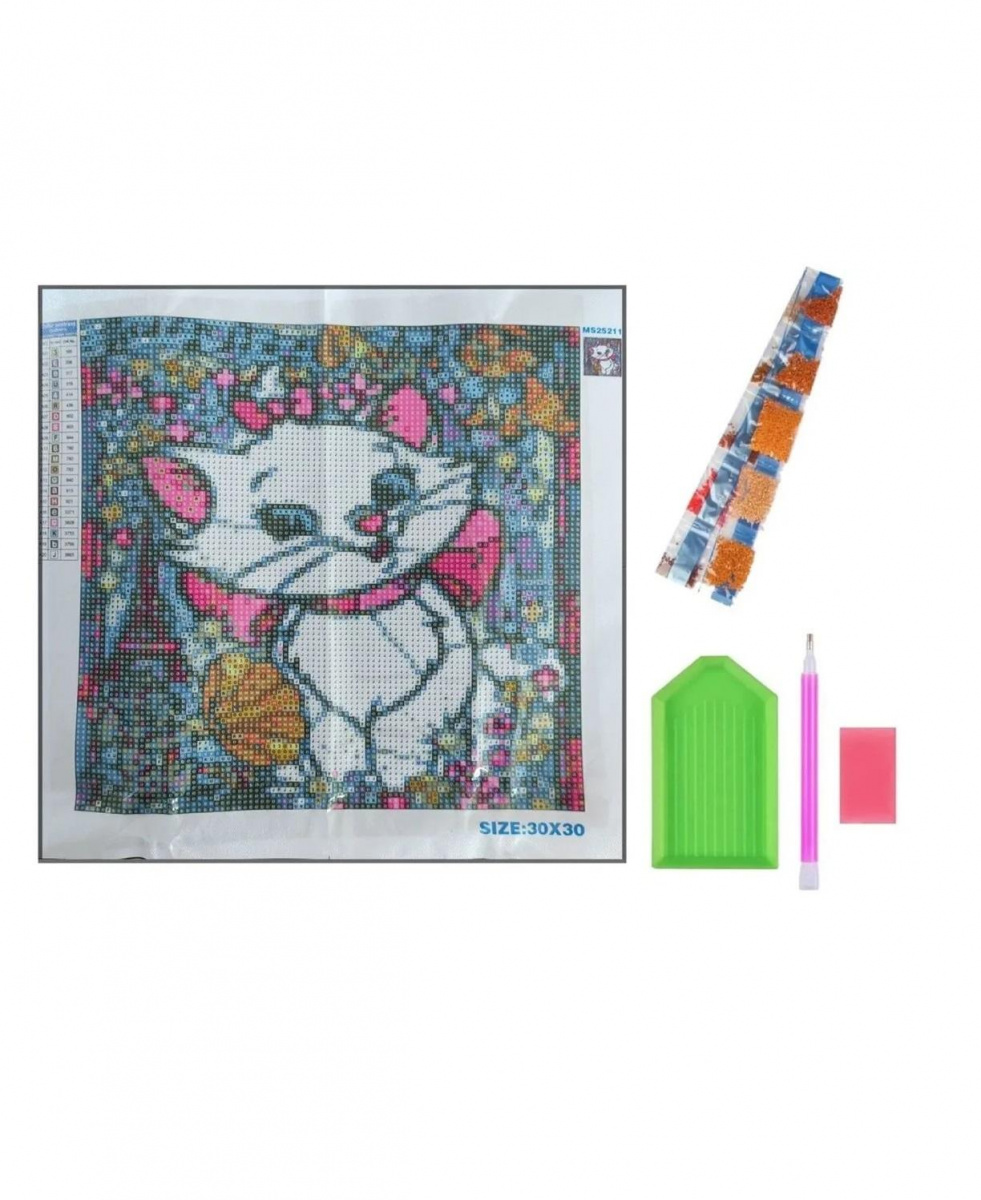 Алмазная мозаика картина стразами Кошечка Мари, 30х30 см